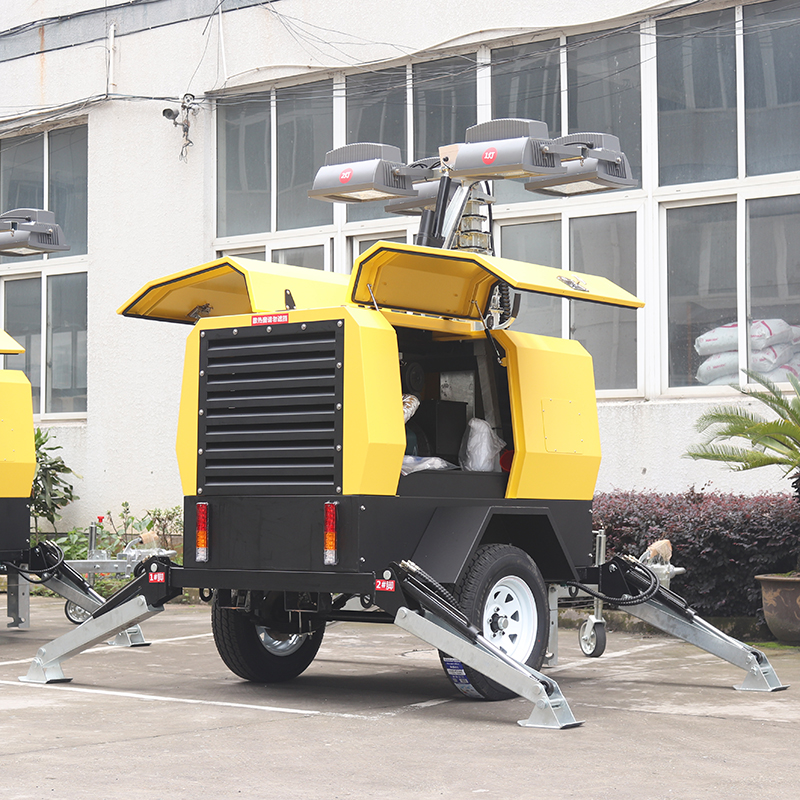 5.由液壓係統組成的四個支撐腳,通作操控麵板簡單操作即可實(shí)現平(píng)衡抓地(dì),確保燈具(jù)平(píng)穩運行。配越野底盤,帶行駛液壓製動(dòng)器,可安全掛車拖(tuō)行。
